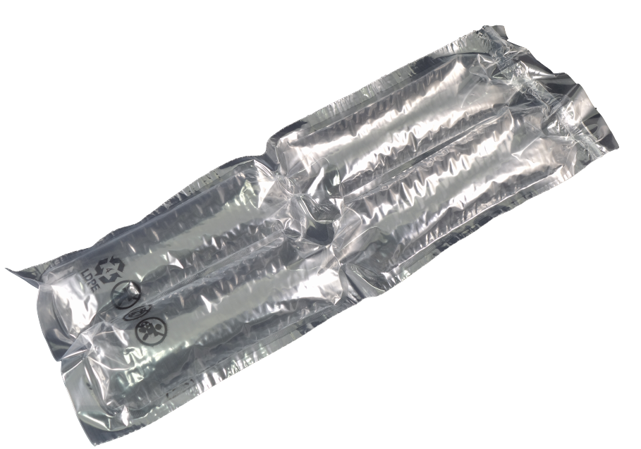氣墊是由氣墊製造機所製造出來的,是一種緩衝包材,是將兩層塑膠布之間注入空氣並密合起來,所以氣墊又被稱為氣泡布。氣泡布是氣墊中的大宗,氣墊製造機大都有能力可以製造出不同大小的氣泡。如下圖所示。